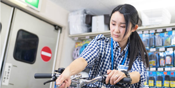 Iさん 28歳DCMダイキ八幡浜店のお客様は、地域のお客様が中心。中には毎日のようにご来店いただけるお客様もいらっしゃいます。ホームセンターの仕事に復帰してから、それまでのレジ・接客のほかにサービスカウンターや自転車コーナーまで担当するようになって、わからないこともふえてしまったんですが、店長や同僚のみなさんに教えていただきながら、一つ一つ覚えてきました。