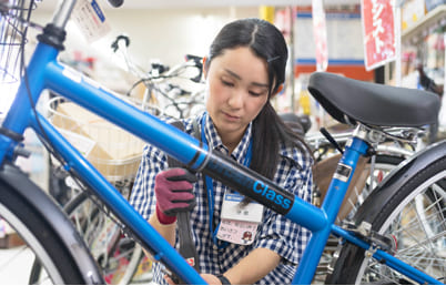 以前はレジがメインでしたが、今は倉庫の業務も含めて自転車コーナーをはじめ幅広く担当しています。